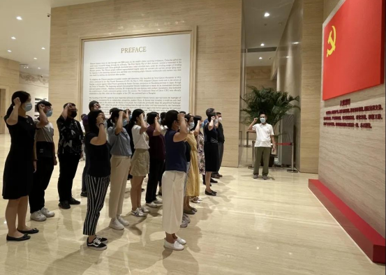 从鸦片战争开始,那样一个落后贫困的国家,现如今已发展成为世界第二经济体,充分证明中国共产党已经带领中国人民走上了富强的道路。在讲解员一路生动的讲解下,我们跟随着历史的脚步领略了我党发展的不同阶段,爱国情怀在心中瞬间迸发,汹涌澎湃。我们感受到中国共产党从石库门到天安门,从兴业路到复兴路,近百年来为人民幸福和民族复兴做出的牺牲和奉献,英雄事迹数不胜数,让人数次泪目。参观结束,教师支部全体党员同长海街道全体党员一起进行了入党誓词宣誓,无数先烈用自己的行动和生命始终践行着当初入党时的誓言,才有了如今我们幸福的生活,而现在,我们是他们的继承者,我们也需要时刻坚守信念,践行入党时的誓言,明天的幸福生活就是我们奋斗的目标!