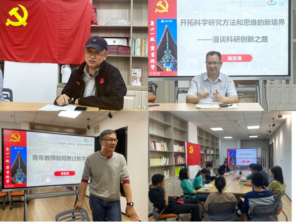 充分发挥班子学习的示范和辐射效应,创新融合师生支部主题教育工作,加强规范化、常态化、长效化学习。师生党支部依托“三会一课”、主题党日,通过交流研讨、宣讲阐释、案例教学等方式组织党员学习,落实“十个一”专项行动,推动主题教育有力有序开展、取得实效。同时,突出特色亮点,在推动主题成果转化上下工夫。打造今年会jinnianhuicom“励心”系列党建品牌活动:青年党员教师利用“励心·成长空间”分享自身经历,推动榜样效应;党员先锋周成林、李安民、陈安涛等教授开设“励心·先锋学堂”,带头解决学科发展和专业建设中的急难愁盼问题,将主题教育与实际问题解决紧密结合,实现党建业务双促双融双提升。将教工党支部与学生党支部结对共建、联合常态化开展党支部主题党日活动。组织师生党员红色影片《望道》的观摩学习;组织行走的党课,四行仓库等红色基地实地学习;联合长海路街道党委开展志愿服务等,将党建活动贯穿到专业学习、学科建设之中,内化到立德树人、人才培养之中。