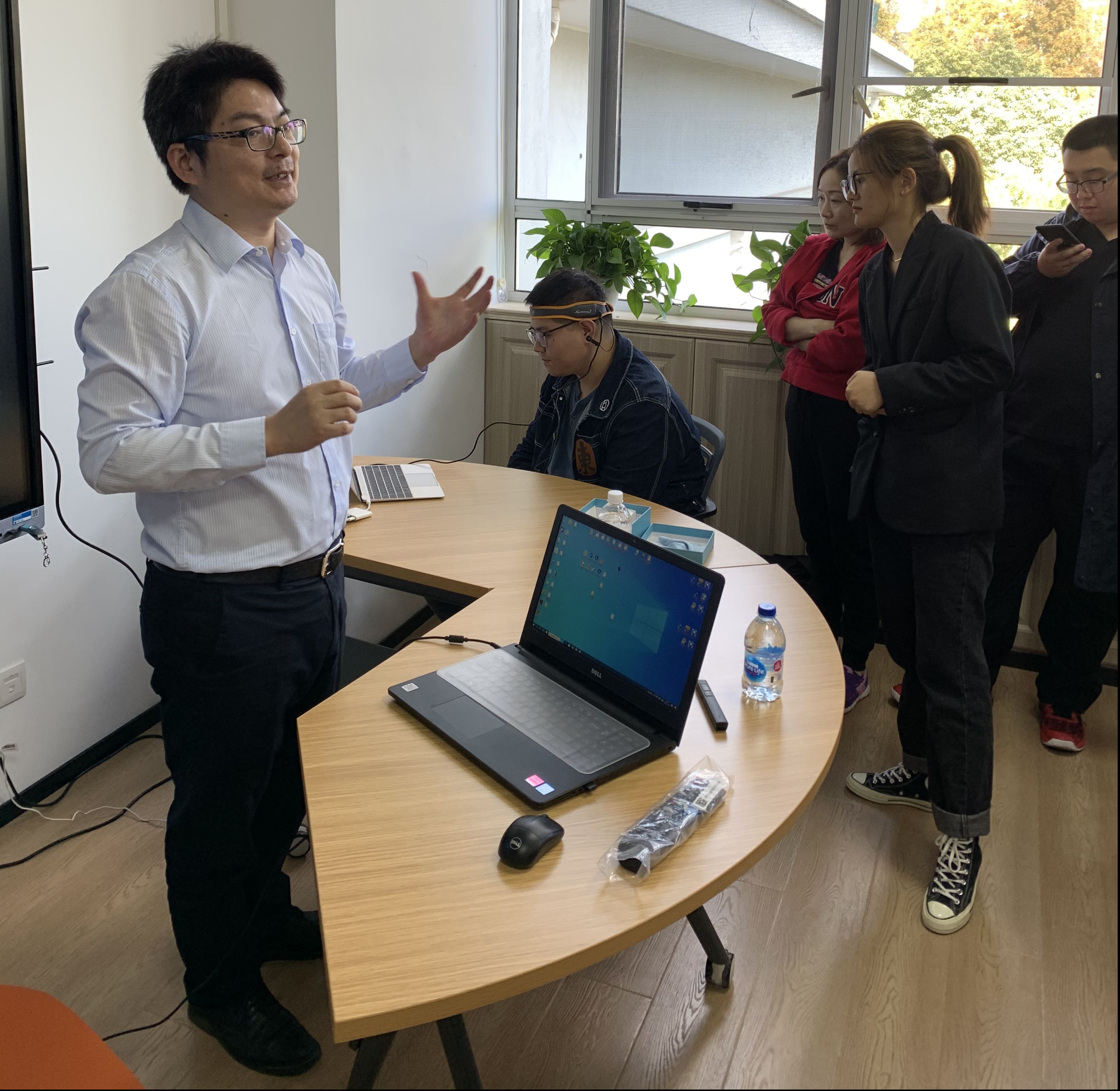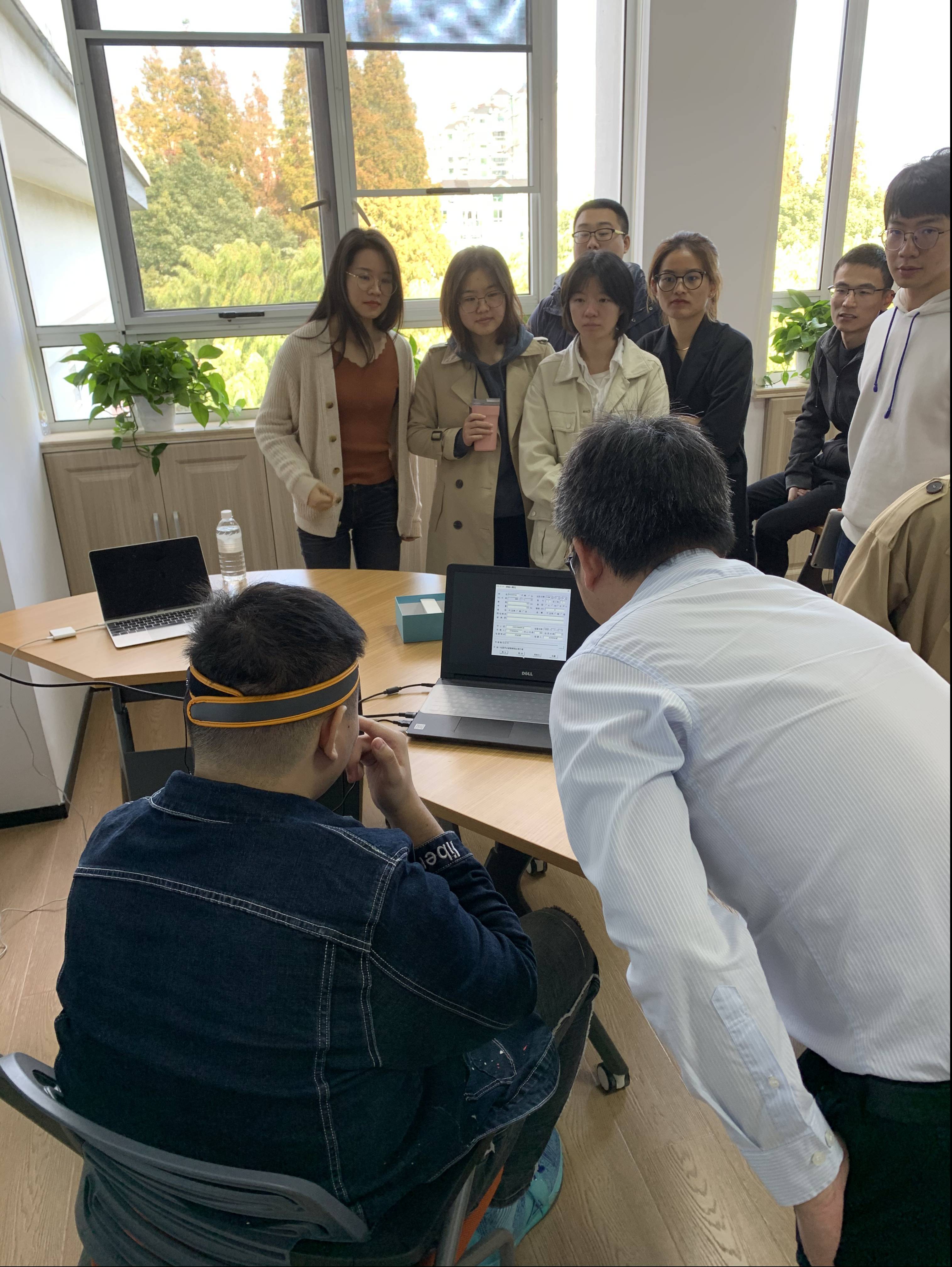 ▲学生们积极参与此次神经反馈训练演练并与桂先生进行意见交换