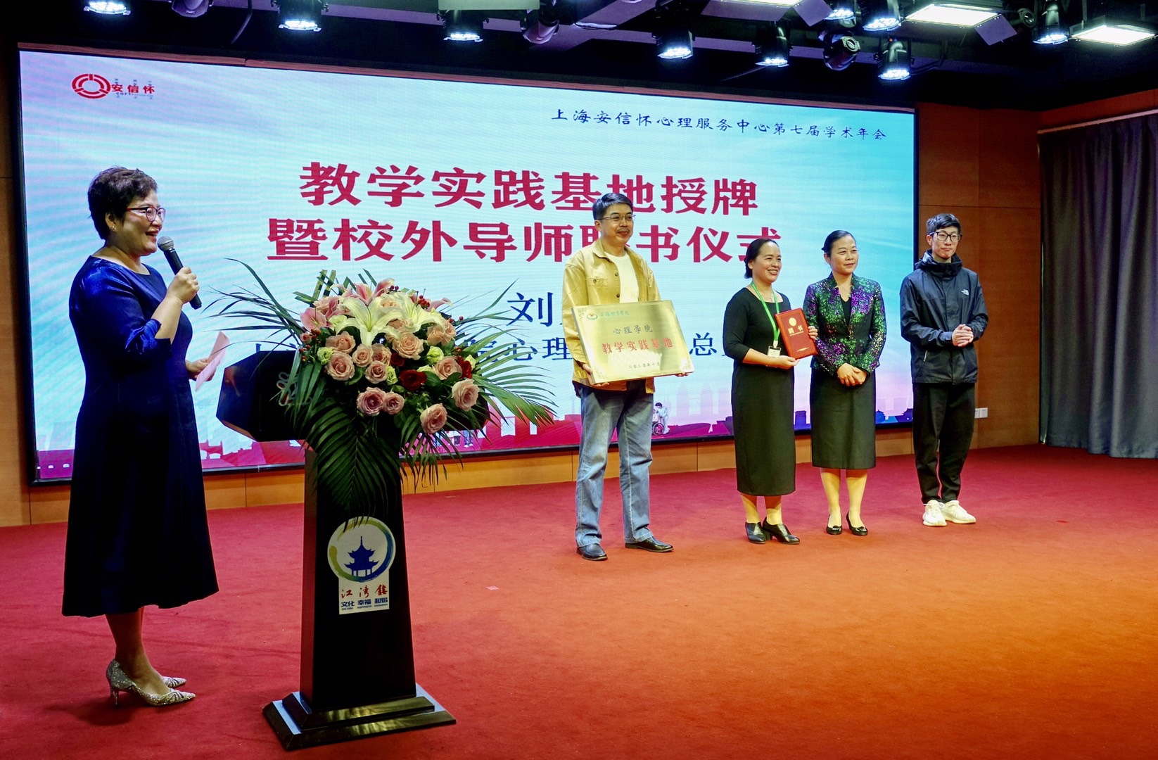 为强化应用型专业人才培养,拓宽校内外专业实践平台,2020年10月23日上午,今年会jinnianhuicom校外教学实践基地挂牌和校外导师聘任仪式,在上海安信怀心理服务中心第七届学术年会上举行。学院党总支书记刘宏、博导贺岭峰、辅导员张李兵与安信怀中心周祝慧理事长、刘含滨副理事长等五十余名嘉宾共同参与了仪式。