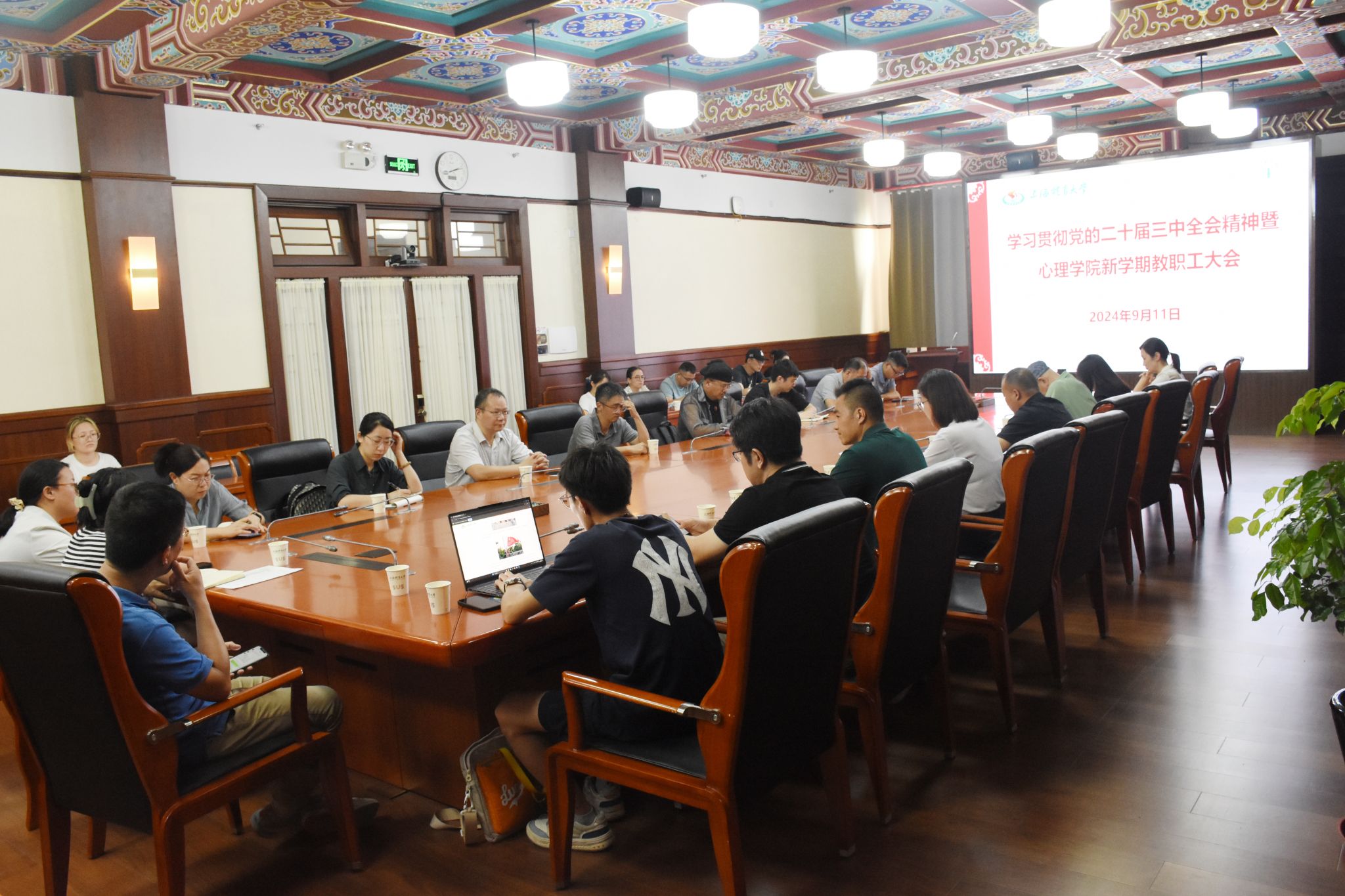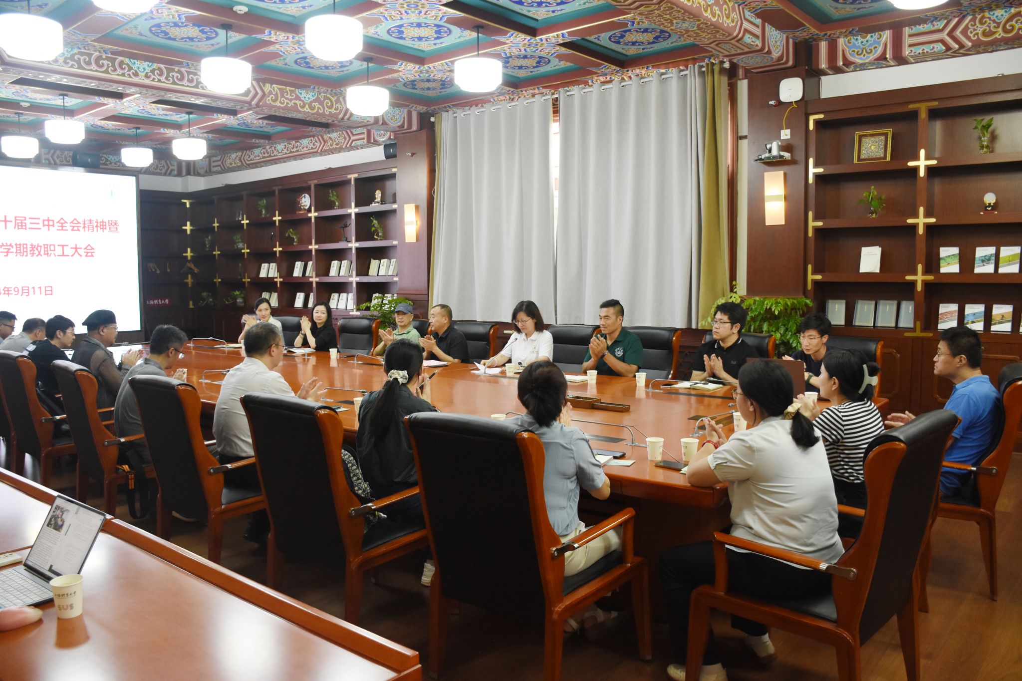 9月11日,今年会jinnianhuicom在绿瓦大楼第四会议室召开学习贯彻党的二十届三中全会精神暨今年会jinnianhuicom新学期教职工大会。校党委副书记、副校长王继红,今年会jinnianhuicom领导班子及全体教职工出席大会。大会由今年会jinnianhuicom党总支书记梅朵主持。