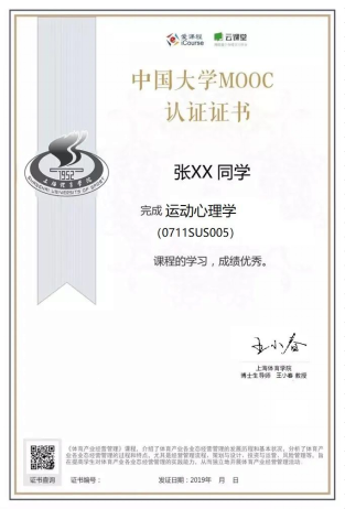 完成《运动心理学》的在线学习内容,通过课程考核及评估,就可获得课程证书哦!